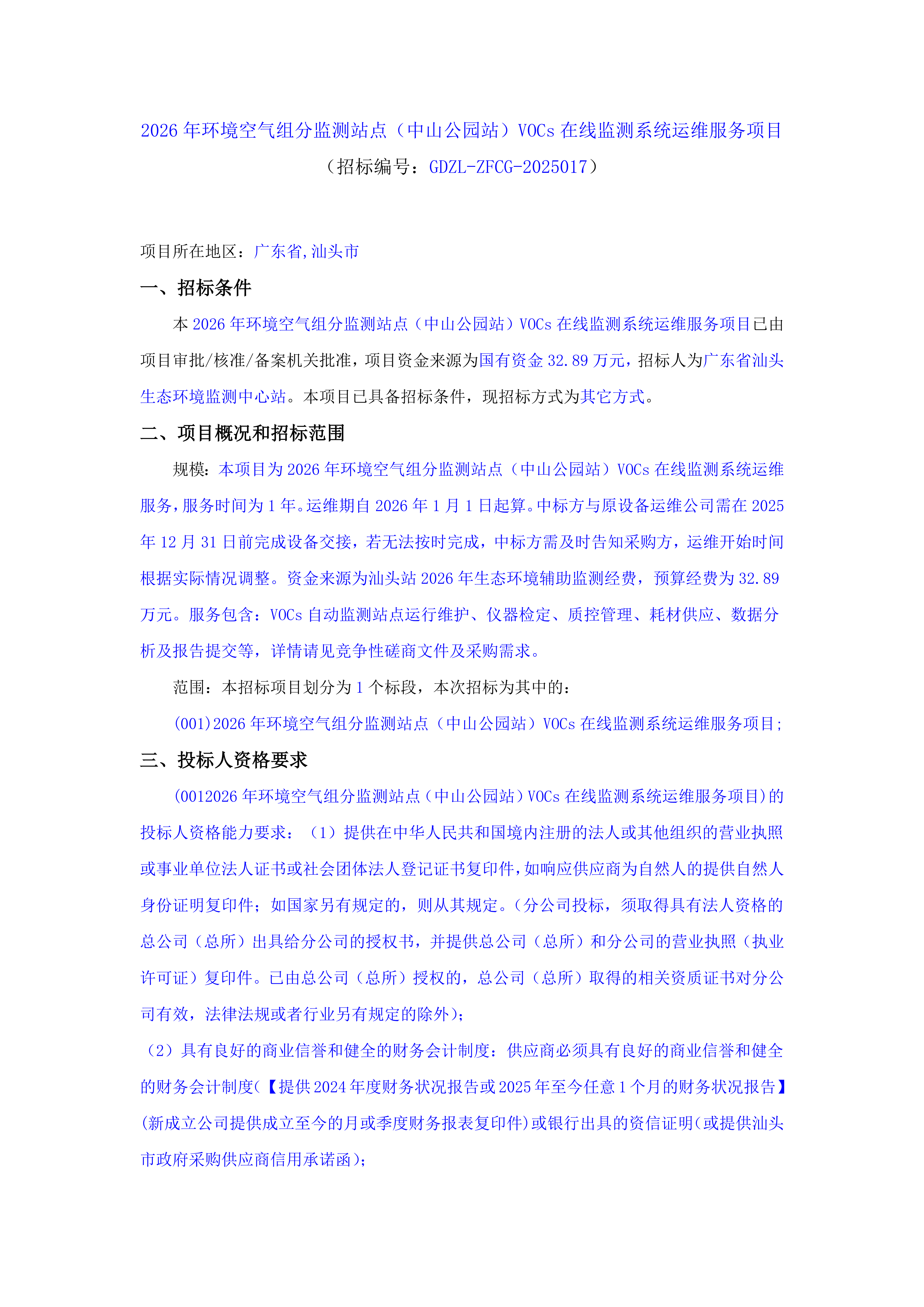 2026年环境空气组分监测站点(中山公园站)VOCs在线监测系统运维服务项目