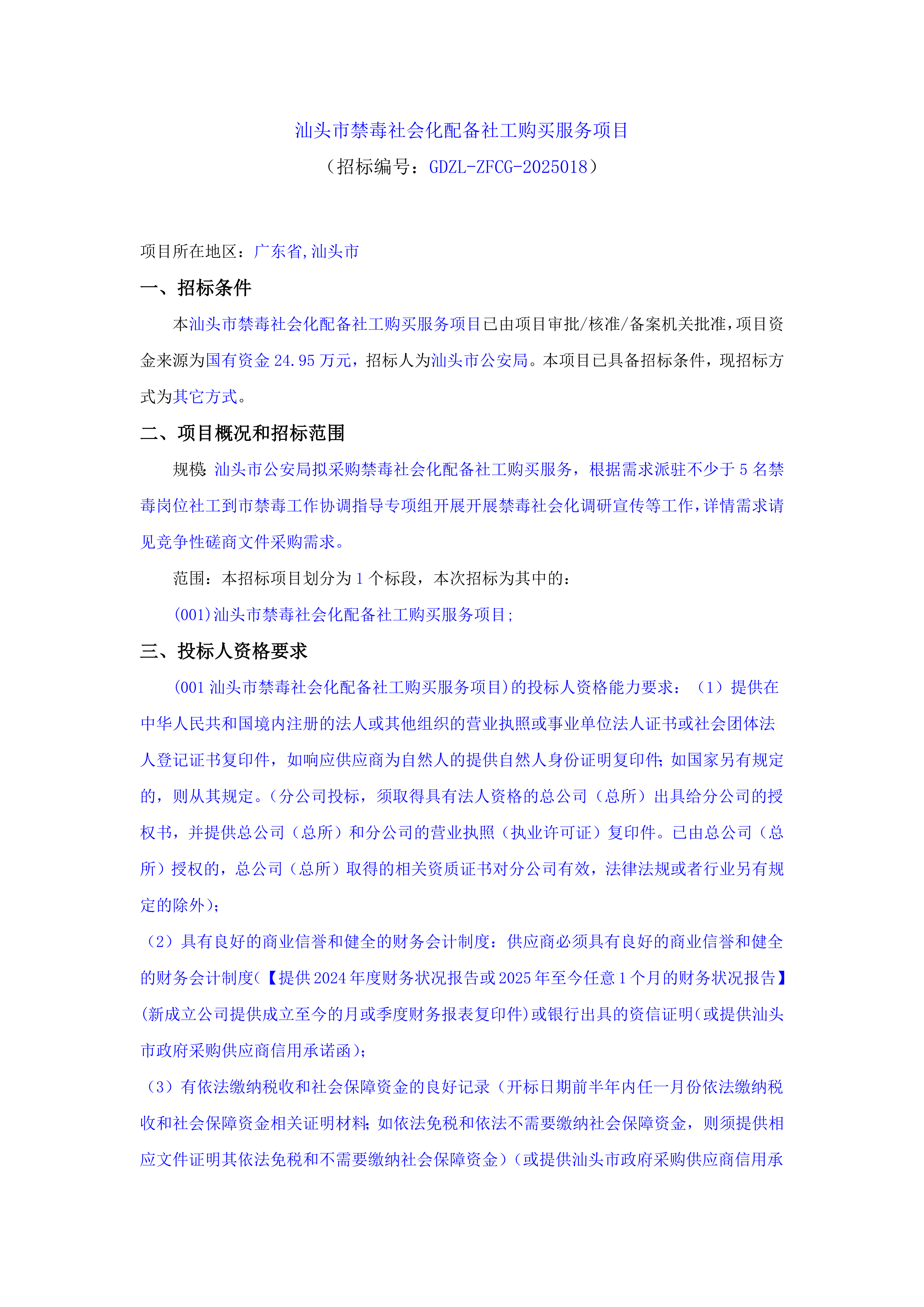 汕头市禁毒社会化配备社工购买服务项目